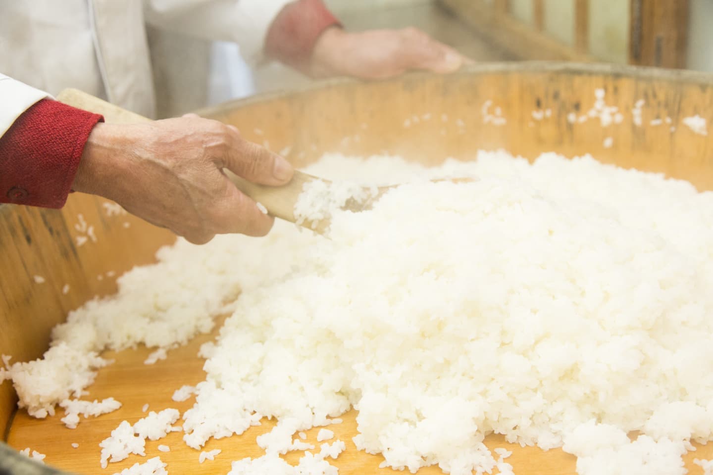 五ツ星お米マイスターの内藤さんが厳選した3種の銘柄米を、季節など状態に応じて比率を変更し、当店独自の好みに合わせて絶妙にブレンド。ガス釜で一気に炊き上げ、創業以来変わらない「秘伝すし酢」を加えたシャリは、味が段違いです。