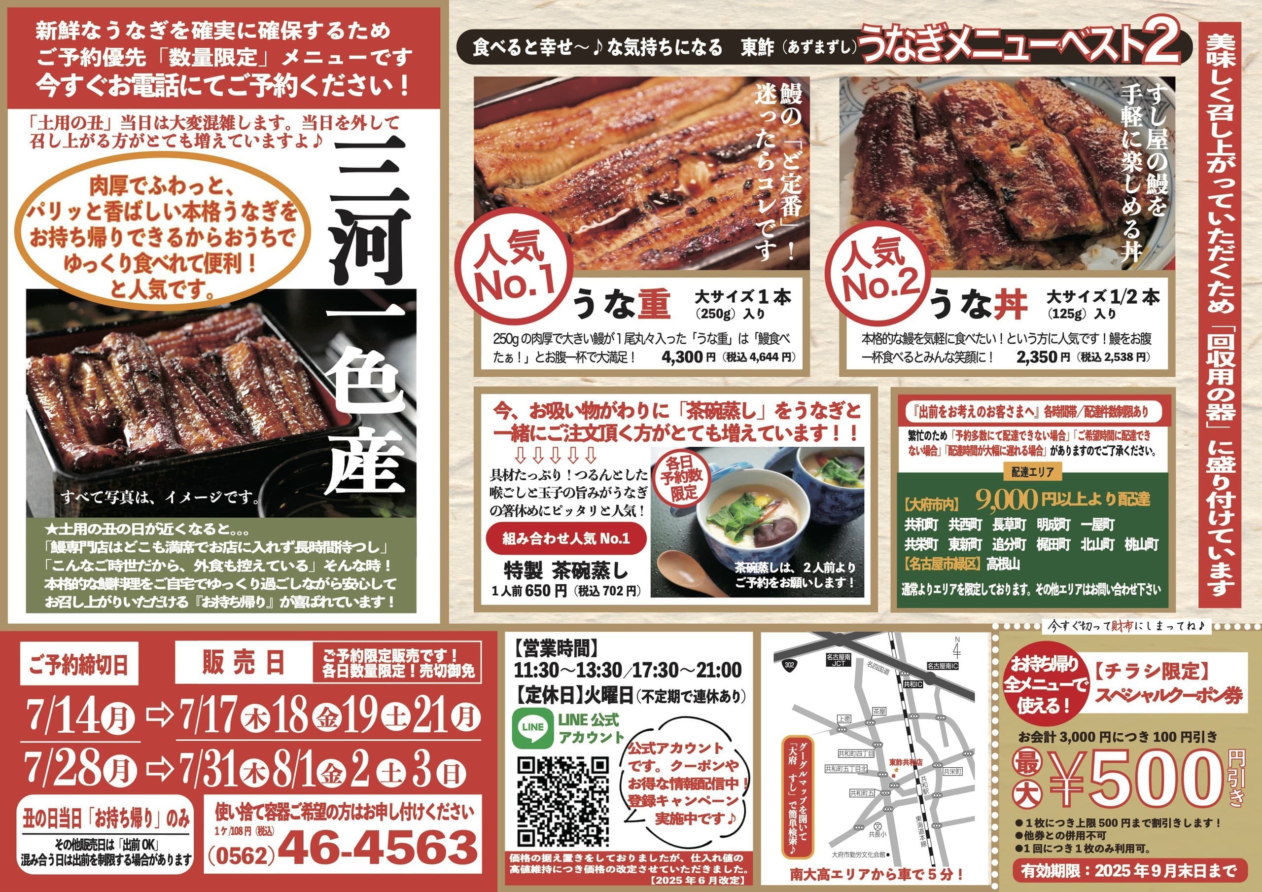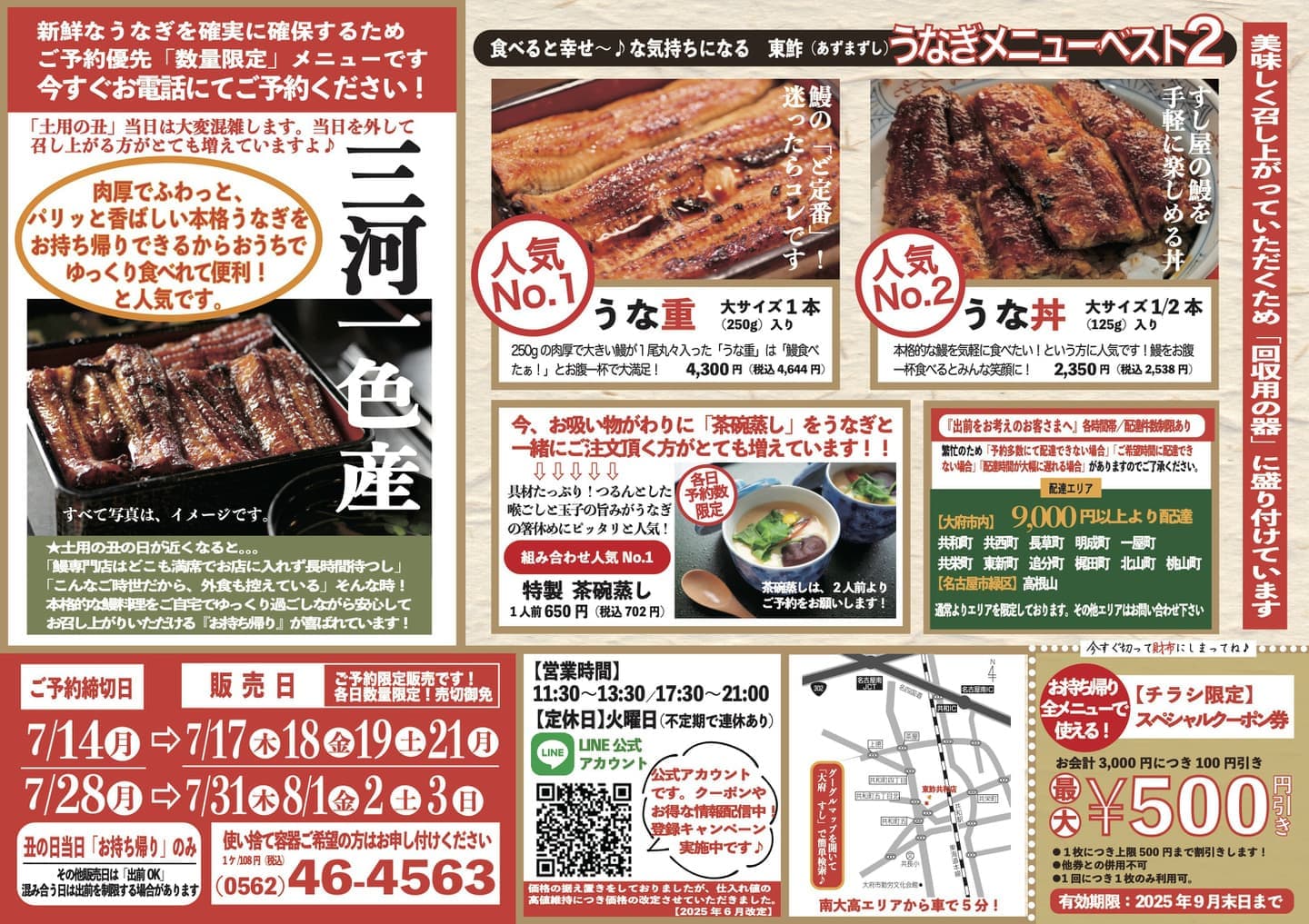 【新鮮なうなぎを確保するため「2日前まで」にご予約をお願いします】