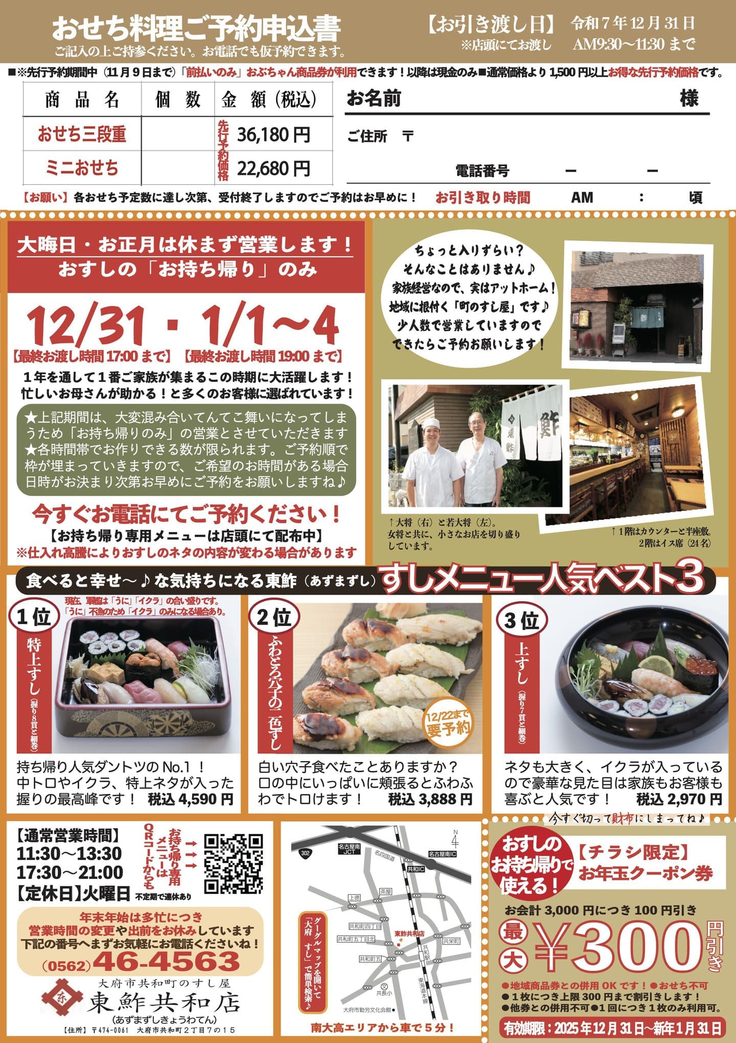 ※先行予約は、「現金」「おぶちゃん商品券」がご利用いただけます。