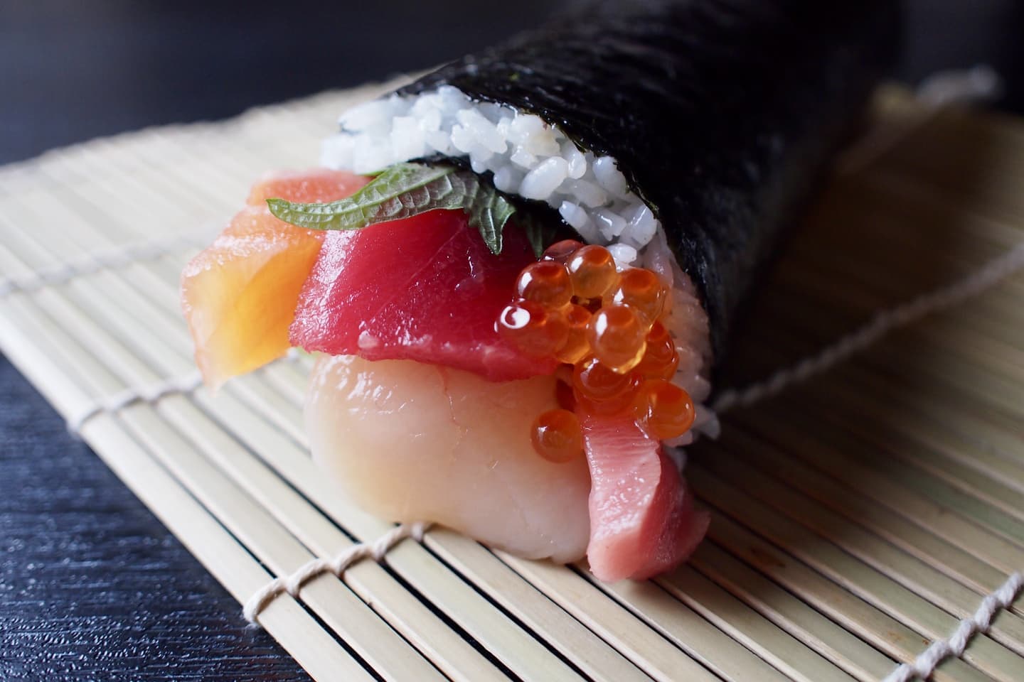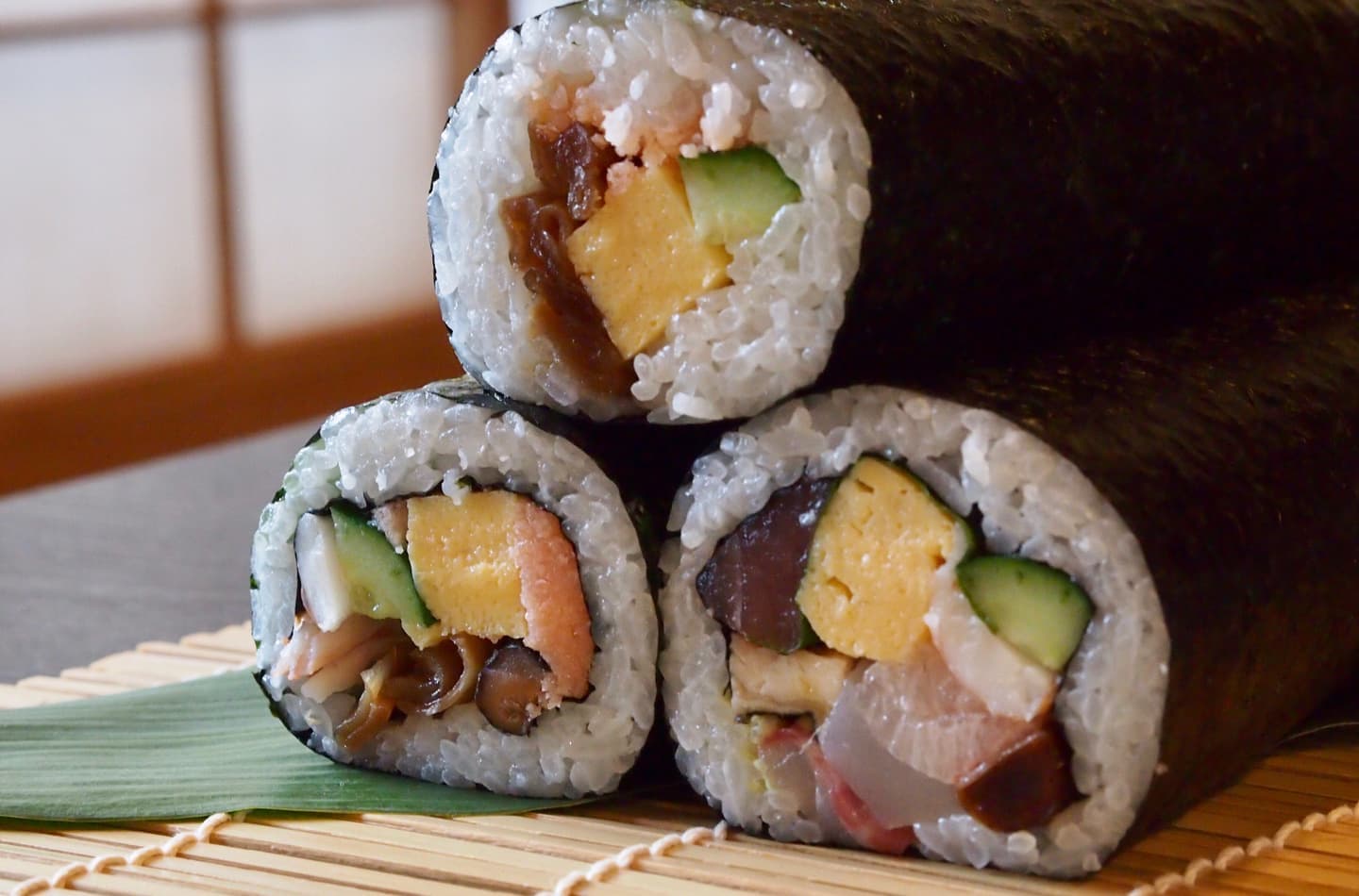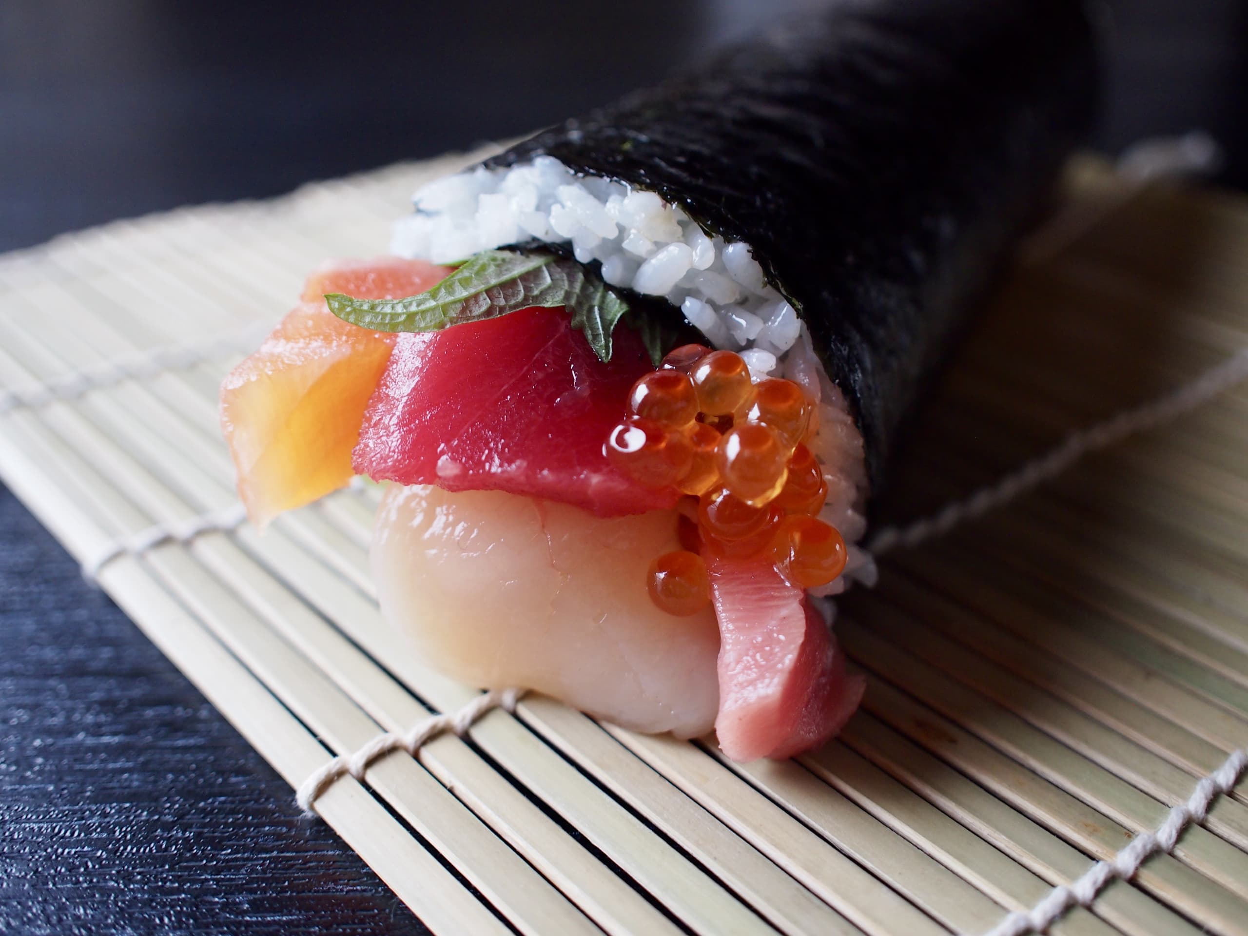丁寧に仕込んだネタをすし職人が時間に合わせて、1本1本 手で巻いています。海苔が香る「巻きたての味」をどうぞ!