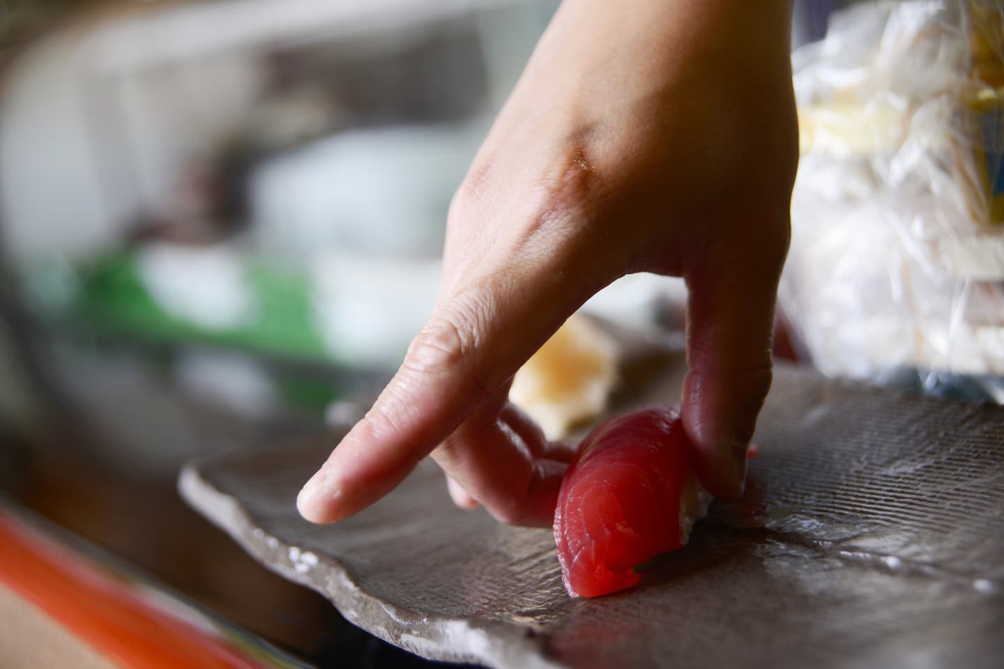 五ツ星お米マイスターの内藤さんが厳選した3種の銘柄米を、季節など状態に応じて比率を変更し、当店独自の好みに合わせて絶妙にブレンド。ガス釜で一気に炊き上げ、創業以来変わらない「秘伝すし酢」を加えたシャリは、味が段違いです。